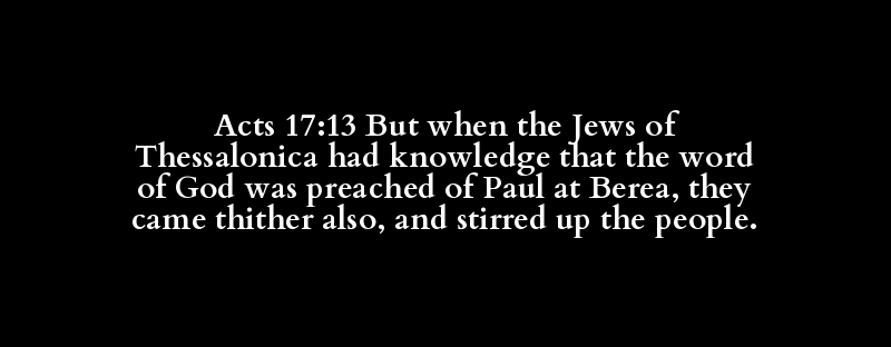Acts 17:13 But when the Jews of Thessalonica had knowledge that the word of God was preached of Paul at Berea, they came thither also, and stirred up the people.