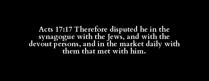 Acts 17:17 Therefore disputed he in the synagogue with the Jews, and with the devout persons, and in the market daily with them that met with him.