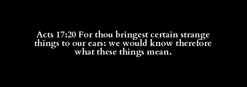 Acts 17:20 For thou bringest certain strange things to our ears: we would know therefore what these things mean.