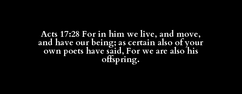 Acts 17:28 For in him we live, and move, and have our being; as certain also of your own poets have said, For we are also his offspring.