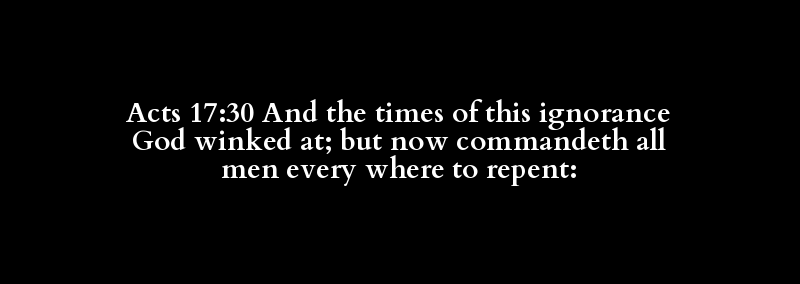 Acts 17:30 And the times of this ignorance God winked at; but now commandeth all men every where to repent: