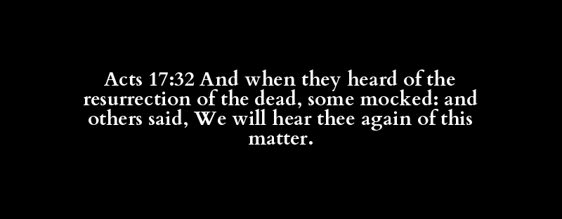 Acts 17:32 And when they heard of the resurrection of the dead, some mocked: and others said, We will hear thee again of this matter.