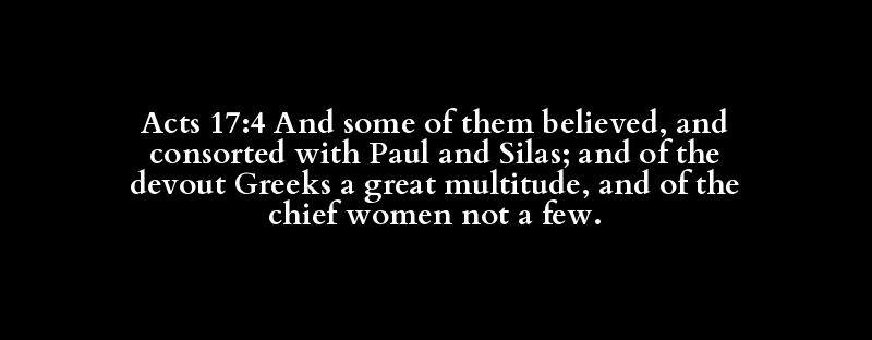 Acts 17:4 And some of them believed, and consorted with Paul and Silas; and of the devout Greeks a great multitude, and of the chief women not a few.