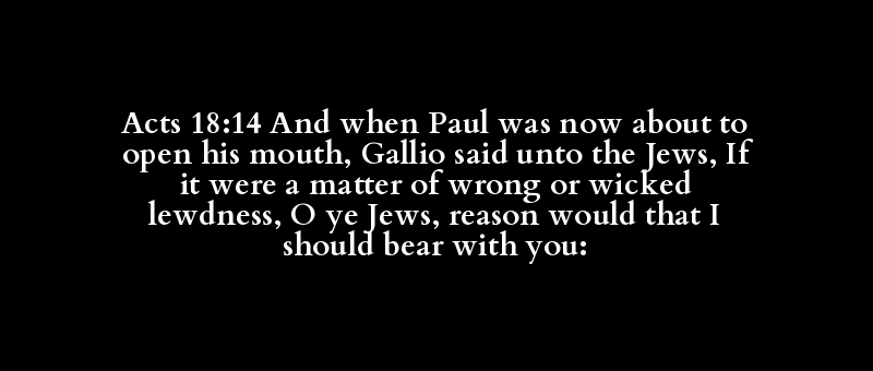 Acts 18:14 And when Paul was now about to open his mouth, Gallio said unto the Jews, If it were a matter of wrong or wicked lewdness, O ye Jews, reason would that I should bear with you: