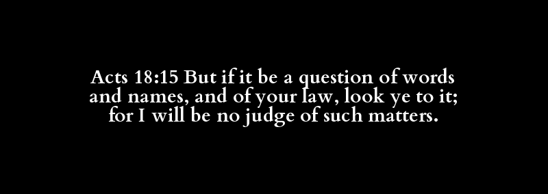 Acts 18:15 But if it be a question of words and names, and of your law, look ye to it; for I will be no judge of such matters.