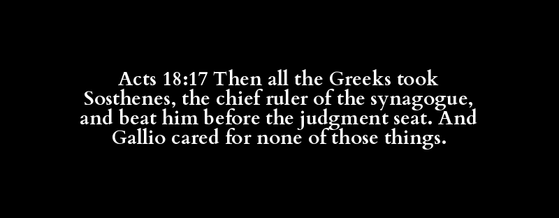| δέ | πᾶς | Ἕλλην | ἐπιλαμβάνομαι | Σωσθένης | ἀρχισυνάγωγος | τύπτω | ἔμπροσθεν | βῆμα | καί | Γαλλίων | μέλω | οὐδείς | τούτων |