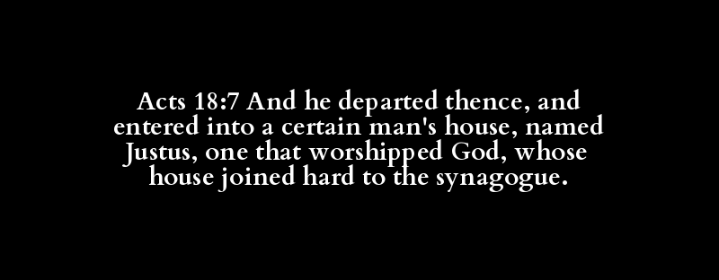 Acts 18:7 And he departed thence, and entered into a certain man's house, named Justus, one that worshipped God, whose house joined hard to the synagogue.