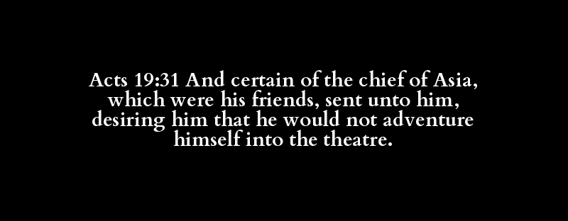 Acts 19:31 And certain of the chief of Asia, which were his friends, sent unto him, desiring him that he would not adventure himself into the theatre.