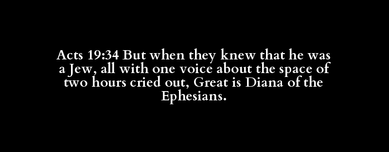 Acts 19:34 But when they knew that he was a Jew, all with one voice about the space of two hours cried out, Great is Diana of the Ephesians.