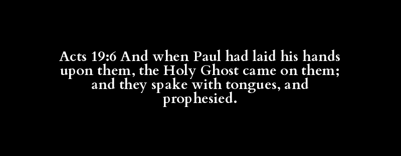 Acts 19:6 And when Paul had laid his hands upon them, the Holy Ghost came on them; and they spake with tongues, and prophesied.