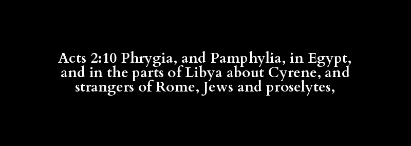 Acts 2:10 Phrygia, and Pamphylia, in Egypt, and in the parts of Libya about Cyrene, and strangers of Rome, Jews and proselytes,