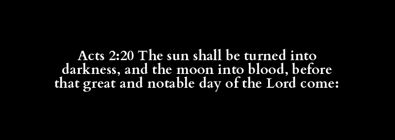 Acts 2:20 The sun shall be turned into darkness, and the moon into blood, before that great and notable day of the Lord come: