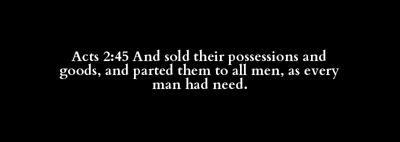 Acts 2:45 And sold their possessions and goods, and parted them to all men, as every man had need.