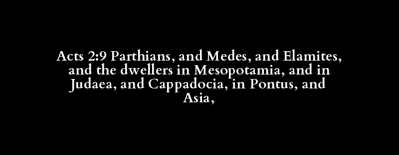Acts 2:9 Parthians, and Medes, and Elamites, and the dwellers in Mesopotamia, and in Judaea, and Cappadocia, in Pontus, and Asia,