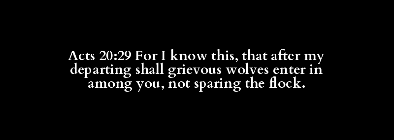 Acts 20:29 For I know this, that after my departing shall grievous wolves enter in among you, not sparing the flock.