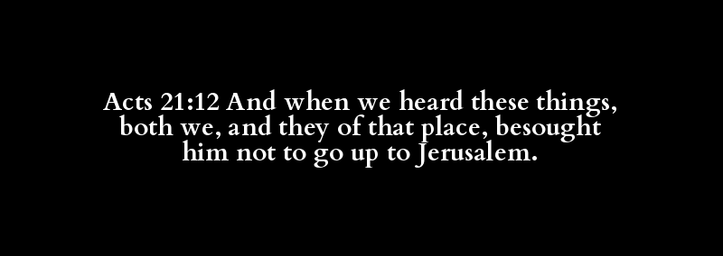 Acts 21:12 And when we heard these things, both we, and they of that place, besought him not to go up to Jerusalem.
