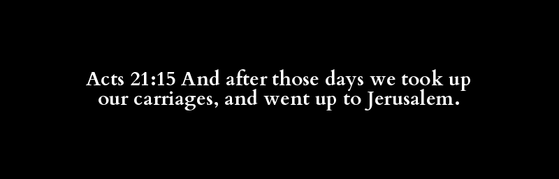 Acts 21:15 And after those days we took up our carriages, and went up to Jerusalem.