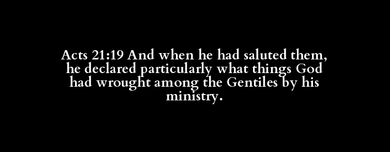 Acts 21:19 And when he had saluted them, he declared particularly what things God had wrought among the Gentiles by his ministry.