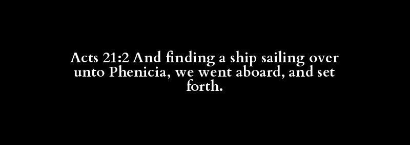 Acts 21:2 And finding a ship sailing over unto Phenicia, we went aboard, and set forth.