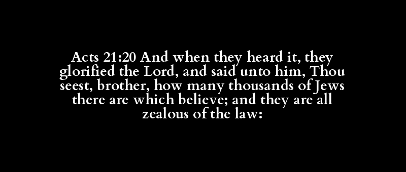 Acts 21:20 And when they heard it, they glorified the Lord, and said unto him, Thou seest, brother, how many thousands of Jews there are which believe; and they are all zealous of the law: