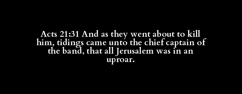 Acts 21:31 And as they went about to kill him, tidings came unto the chief captain of the band, that all Jerusalem was in an uproar.