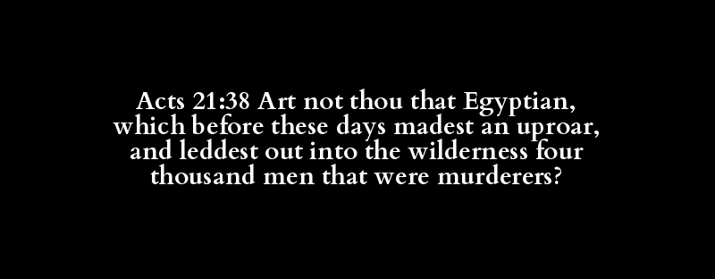 Acts 21:38 Art not thou that Egyptian, which before these days madest an uproar, and leddest out into the wilderness four thousand men that were murderers?