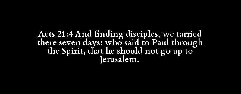 Acts 21:4 And finding disciples, we tarried there seven days: who said to Paul through the Spirit, that he should not go up to Jerusalem.