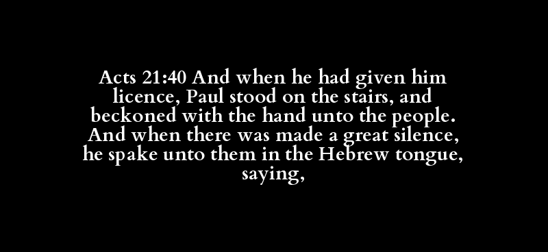 Acts 21:40 And when he had given him licence, Paul stood on the stairs, and beckoned with the hand unto the people. And when there was made a great silence, he spake unto them in the Hebrew tongue, saying,
