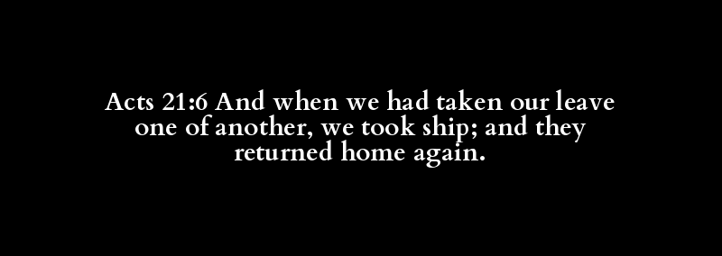 Acts 21:6 And when we had taken our leave one of another, we took ship; and they returned home again.