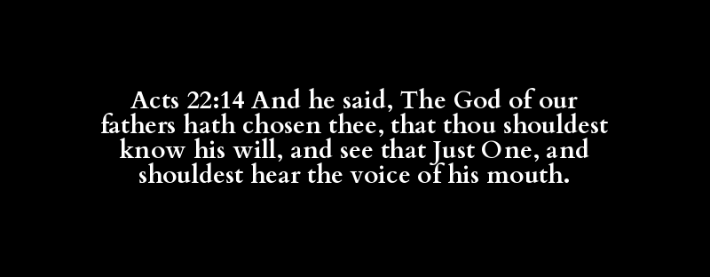 Acts 22:14 And he said, The God of our fathers hath chosen thee, that thou shouldest know his will, and see that Just One, and shouldest hear the voice of his mouth.