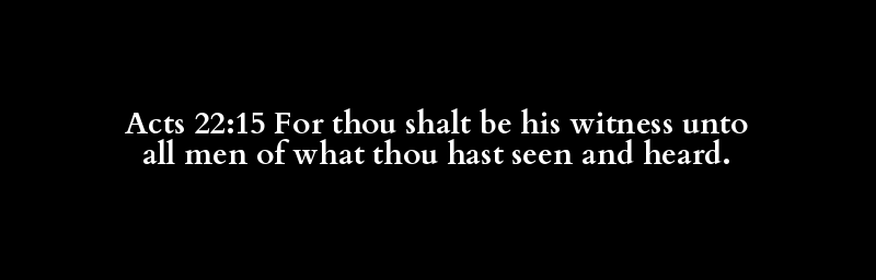 Acts 22:15 For thou shalt be his witness unto all men of what thou hast seen and heard.