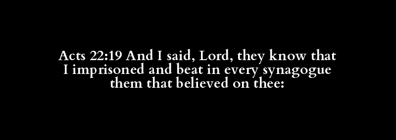 Acts 22:19 And I said, Lord, they know that I imprisoned and beat in every synagogue them that believed on thee: