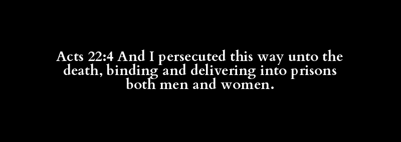 Acts 22:4 And I persecuted this way unto the death, binding and delivering into prisons both men and women.