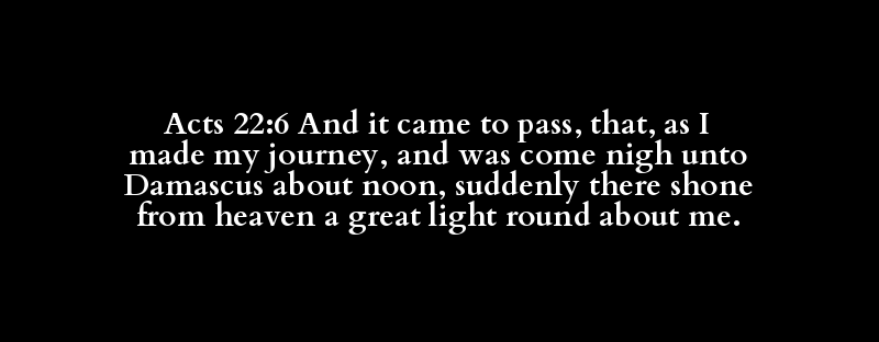 Acts 22:6 And it came to pass, that, as I made my journey, and was come nigh unto Damascus about noon, suddenly there shone from heaven a great light round about me.