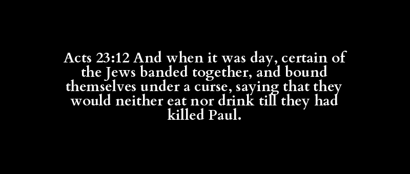 Acts 23:12 And when it was day, certain of the Jews banded together, and bound themselves under a curse, saying that they would neither eat nor drink till they had killed Paul.