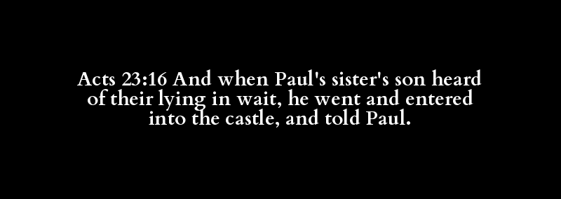 Acts 23:16 And when Paul's sister's son heard of their lying in wait, he went and entered into the castle, and told Paul.