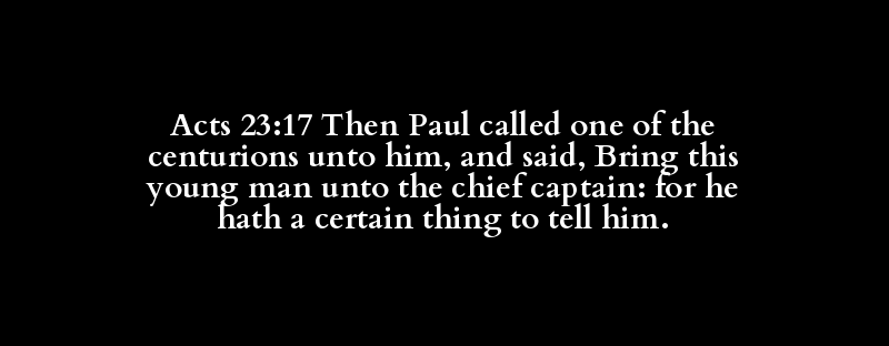 Acts 23:17 Then Paul called one of the centurions unto him, and said, Bring this young man unto the chief captain: for he hath a certain thing to tell him.