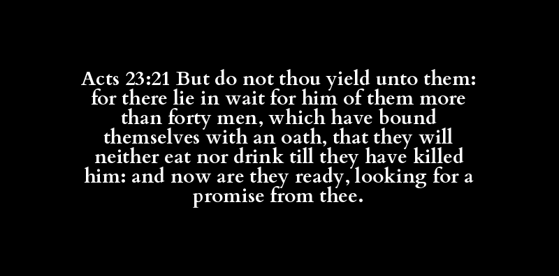 | οὖν | πείθω | μή | σύ | πείθω | αὐτός | γάρ | ἐνεδρεύω | αὐτός | ἐκ | αὐτός | πλείων | τεσσαράκοντα | ἀνήρ | ὅστις | ἀναθεματίζω | ἑαυτοῦ | ἀναθεματίζω | φάγω | μήτε | φάγω | μήτε | πίνω | ὅς | ἕως | ἀναιρέω | αὐτός | καί | νῦν | εἰσί | ἕτοιμος | προσδέχομαι | ἐπαγγελία | ἀπό | σοῦ |