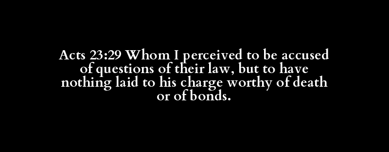 Acts 23:29 Whom I perceived to be accused of questions of their law, but to have nothing laid to his charge worthy of death or of bonds.