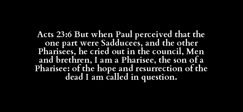 Acts 23:6 But when Paul perceived that the one part were Sadducees, and the other Pharisees, he cried out in the council, Men and brethren, I am a Pharisee, the son of a Pharisee: of the hope and resurrection of the dead I am called in question.
