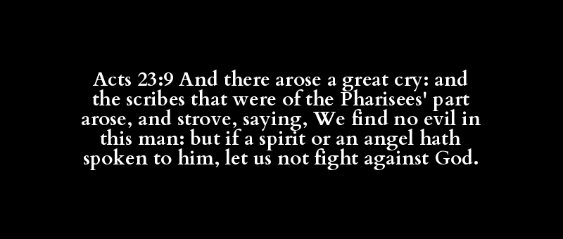 Acts 23:9 And there arose a great cry: and the scribes that were of the Pharisees' part arose, and strove, saying, We find no evil in this man: but if a spirit or an angel hath spoken to him, let us not fight against God.