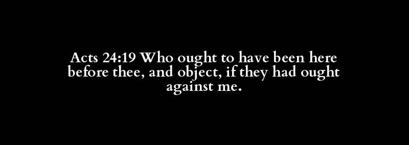 Acts 24:19 Who ought to have been here before thee, and object, if they had ought against me.