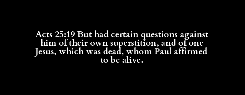 Acts 25:19 But had certain questions against him of their own superstition, and of one Jesus, which was dead, whom Paul affirmed to be alive.