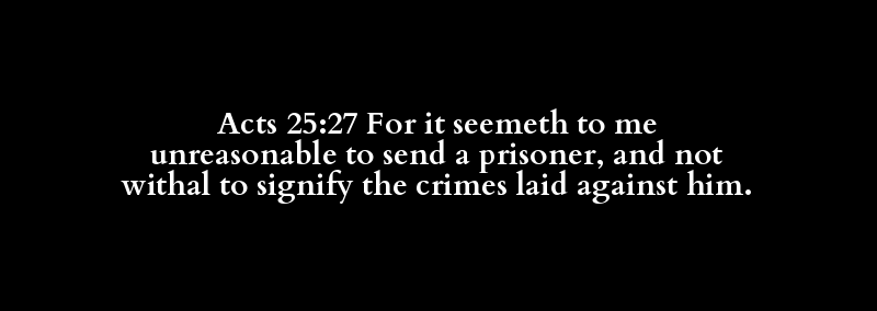 Acts 25:27 For it seemeth to me unreasonable to send a prisoner, and not withal to signify the crimes laid against him.