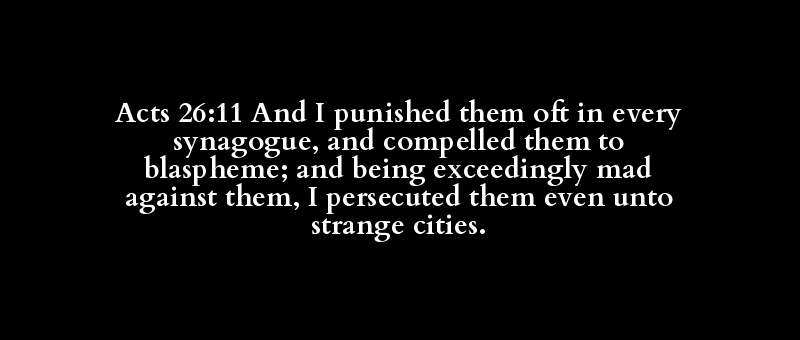 Acts 26:11 And I punished them oft in every synagogue, and compelled them to blaspheme; and being exceedingly mad against them, I persecuted them even unto strange cities.