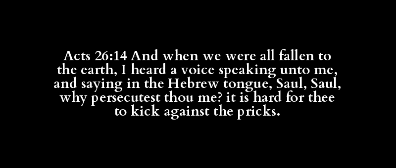 Acts 26:14 And when we were all fallen to the earth, I heard a voice speaking unto me, and saying in the Hebrew tongue, Saul, Saul, why persecutest thou me? it is hard for thee to kick against the pricks.