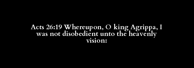 Acts 26:19 Whereupon, O king Agrippa, I was not disobedient unto the heavenly vision: