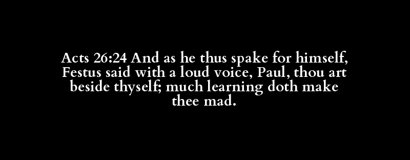 Acts 26:24 And as he thus spake for himself, Festus said with a loud voice, Paul, thou art beside thyself; much learning doth make thee mad.
