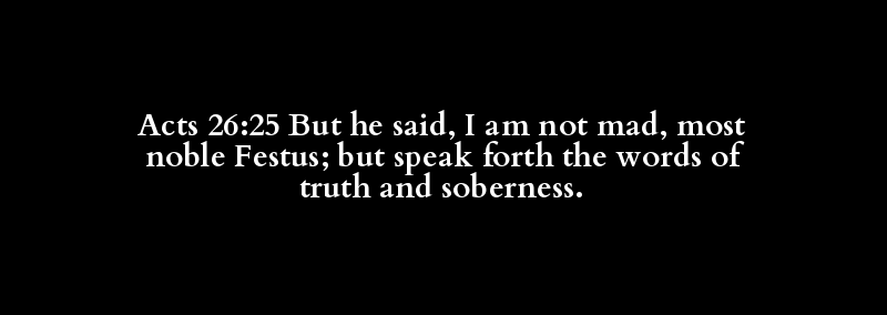 Acts 26:25 But he said, I am not mad, most noble Festus; but speak forth the words of truth and soberness.
