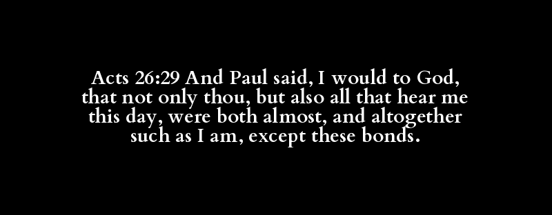 | δέ | Παῦλος | ἔπω | εὔχομαι | ἄν | θεός | οὐ | μόνον | σέ | ἀλλά | καί | πᾶς | ἀκούω | μοῦ | σήμερον | γίνομαι | καί | ὀλίγος | ἐν | καί | πολύς | ἐν | τοιοῦτος | κἀγώ | ὁποῖος | εἰμί | παρεκτός | τούτων | δεσμόν |